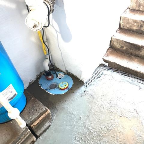In order to keep water from pooling in the cellar, a sump pump was installed along with a buried discharge pipe to pump water out of the cellar. A Lateral Line was installed and concrete was poured on top of it to bury it in order to help the drainage of water seeping through the floors.