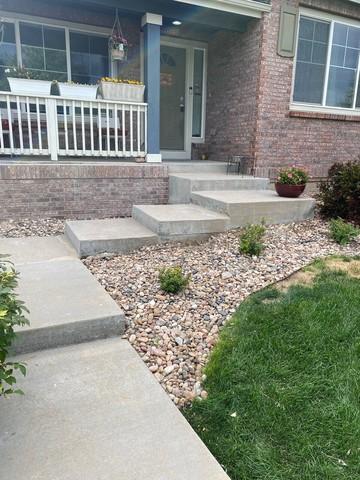 From this side view, you can really see how the PolyLevel lifts the steps back into place! There are small holes drilled in the concrete to inject the foam in, it expands and lifts the concrete back to where it belongs. The holes are then filled in after like they were never there!