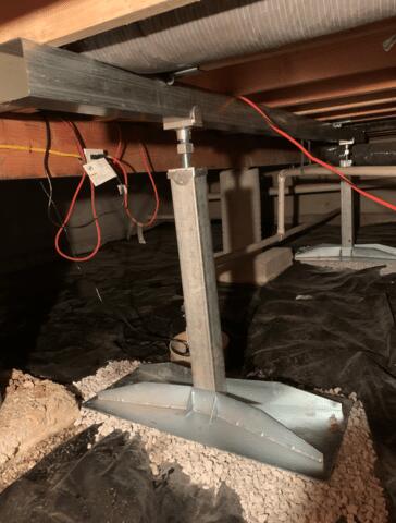 SmartJack System was installed in this home to lift the Crawl Space back to its original height. This system is made of galvanized steal in order to last for years without problems of rust or moisture. Using this system we can ensure that moisture sinking in will not be what causes a Crawl Space to sag.